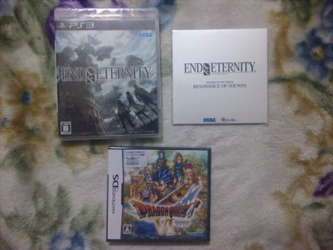 友「アバター見に行かない?」 なた「いや、俺仕事だけど・・・」 友「知ってる、終わったら行こうよ」 なた「いや、終わるの夜19時ぐらいだよ?」 友「知ってる、チケット19時半の買っておいたよ」 なた「\(^o^)/」 友「席は真ん中らへんにしといた」 なた「用意良いね」 友「もっと褒めて良いよ」 なた「会ったら叩くね(^-^)」 って事でアバターを見に行ってきました。 先日発売されたPS3のエンドオブエタニティをプレイ中。 このゲームはAAA(トライエース)とセガが開発したゲームなのですが、 作品の雰囲気的にはシャドウハーツとか、ヴァルキリープロファイル2みたいな所を感じます。 ゲームシステム的には・・・正直とっつきにくいです。 特に戦闘は慣れるまでに投げ出してしまう人も少なくないかもしれませんね。 メインの主人公は3人のみ。 【主人公】(3人居ますが、全員が等しく主人公扱いされてます) ヴァシュロン:意味ありげなセリフを吐く事もあるが、基本良い兄貴さん。だがちょいエロ親父。 ゼファー:厨二病全開かと思われたが、只の反抗期気味の17才の少年。優しい純情少年です。 リーンベル:紅一点だがキャラクターは結構立ってる、というか可愛すぎる。君が主役だ。 ゲーム中はこの3人を操作して進めていく事になります。 ジャンルはRPGですが、普通のRPGとは戦闘から成長システムまで全然違います。 動画とかだとA・RPGっぽいですが、実はS・RPGの方がしっくりきますね。 ギルドで仕事を請け負いながら、メインのストーリーを進行、というのがこのゲームの主な進め方。 寄り道は闘技場など、RPGなら欠かせないやり込み要素もかなり詰まってる模様。 キャラクターには衣装なる物が数多く用意されており、 ゲーム中に衣装をチェンジするとちゃんと戦闘やイベントなどでも反映されます。 (一部ゲーム中で反映されないものもあり) 各キャラクターに用意されてるステータスで重要なのが武器LV。 これにはハンドガン、マシンガン、グレネード弾(投擲)という3種類があるのですが これらの3つの武器を使い続ける事で、キャラクターの武器LVが上がっていきます。 キャラのハンドガンのLVが3、マシンガンのLVが4、投擲のLVが1 ならば、 その武器LVを合計した8が現在のそのキャラクターのLVという事になります。 武器自体にはLVなどは無く、あくまでもキャラクターの武器(の扱い方)LVという物なので 装備はキャラ間で使いまわしたりして3つのLVを満遍なく上げていく事になります。 (別に一点特化でも大丈夫ではありますが、後できつくなる) 戦闘は言葉で説明するのが滅茶苦茶難しいシステム。 ハンドガン、マシンガンでの攻撃が基本スタイルとなるのですが スクラッチ・ダメージ(マシンガンでの攻撃で与えるダメージ) ダイレクト・ダメージ(ハンドガンでの攻撃で与えるダメージ) インビジブル・アクション(ゲージを使用してのちょっと激しい攻撃) レゾナンス・アタック(ゲージを使用して3人でかなり激しい攻撃) ↑みたいな言葉があれやこれやと沢山出てきます。 しかもゲーム中のチュートリアルとかでしっかりと学ばないと 雑魚戦でも普通に全滅します><(私も何度も死んでますw) 序盤は適当に銃撃ってても勝てる事が多いですが・・・ 中盤以降はちゃんと考えて戦闘進めないとエライ事になりますw 戦闘を有利に進めるには本当「慣れる」しかないので、 この戦闘が好きになれるか否かで、このゲームの面白さが変わってくると思います 戦闘に面白さを見出す事が出来たらこのゲームは本当に面白い。 ストーリーとかは真面目と思わせて、正直ギャグな展開が満載なので(必見の価値アリw) 普通に見てて楽しいですw 声優さんとかもぶるうぁぁぁぁぁぁぁの人とか、ひかりになれぇぇぇぇぇぇぇ!の人とか色々豪華w 難しいというよりは、ややこしいと言った方が良いのかもしれませんが どうにも説明しにくい戦闘になってまして、かといって説明書をじっくりと見ても余計混乱するというw 戦闘を自分でやってみて「感覚」で戦い方を実戦形式で学ばないと駄目かもです。 しかし、戦闘にさえ慣れてしまえば人によっては神ゲーとまで呼べるかもしれません。 特に武器のカスタマイズとかがかなりやり込み式になってるので 時間があればとにかくカスタマイズに嵌ってしまいます。 衣装も集めだしたらキリが無く、アイテム収集もかなりの数がありそう。 音楽も良いし、ロードとかも特に気になるLVでは無いと思いますのでテンポ良く進められます。 難易度も、このゲームをヌルゲーなどとは簡単には呼べない筈。 戦術を駆使して戦い、それが嵌った時などは快感です♪ 普段からゲームをやらない人には・・・中々大変かもしれませんが 個人的には、ここ最近のRPGの中でも普通に良ゲーと呼べる出来になってると思います。 面白いけど人に勧めにくいRPGランキング! ってのがあればかなり上位に食い込みそうなのがこのゲームですw 今日は仕事帰りにドラクエ6買って来ました。 早速ちょっとプレイ