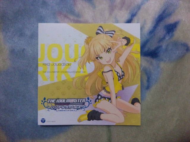 シンデレラガールズCDレビュー003「三村かな子」 私の中ではこれといってぽっちゃりのイメージは無かったのですが、最近のモバマスのカードを見ると・・・ 公式の狙い過ぎ感がパネェ! という印象はありますw まぁそれよりも楽曲についてレビューしよう、かな子が歌うショコラ・ティアラですが 初めて聞いた時の印象は「可愛いじゃん」というのがまず最初に来ました。 歌い出しから思ったよりも細い綺麗な声で歌が始まるので、 自然に耳に入ってくるというか、とにかく聞き易いですね。 しかし、曲に関しては可愛くて良いね♪、という気持ちで一杯なのですが ドラマ部分でかな子が喋っているのを聞くと、「ゆるゆり」の歳納京子に聞こえてしまう! 同じ大坪由佳さんが声を当てているのですが、どうしても京子が喋ってるように聞こえます。 キャラが全然違うせいで、なんだかむずがゆいというか不思議な感じですね。 大坪由佳さんは非常に綺麗で細い声質なのですが、 かな子はもう少しだけ低い声のイメージがありましたがきっと聞いていると慣れてくると思います。 ドラマの内容部分は他のシンデレラガールズの物と大きくは変わりませんが、 やはりスイーツ系トークが中心でしたね。 かな子は良く見た目で雪歩に似てるとか言われる事がありますが、中身も似てる感じがします。 いつかドラマCDで絡む日が来ますように・・・! いよいよ残るレビューも後2枚、明日は「高垣楓」のCDをレビューします。 |